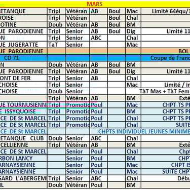04 et 05 Avril 2026 - Triplette Jeu Provençal - Préliminaires : BOURBON LANCY - Qualificatif : BOURBON LANCY