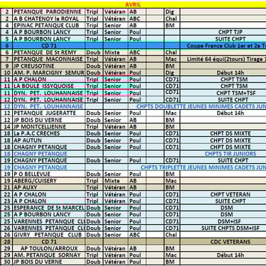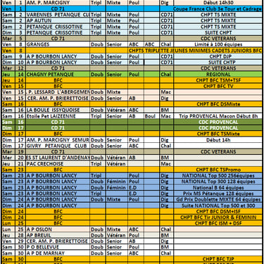 Retrouvez ici le calendrier complet du CD 71