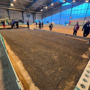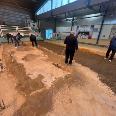 Les bénévoles ont oeuvré pour la réfection de 2 terrains mixtes, au programme de ce lundi chargé : grattage des terrains, mise en place du caillou "gris" extérieur, suppression des barrières.